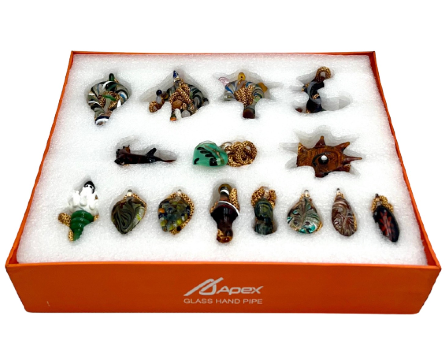 APEX GLASS HAND PIPE ASSORTED PENDANT DESIGN 15CT/ DISPLAY (P02)