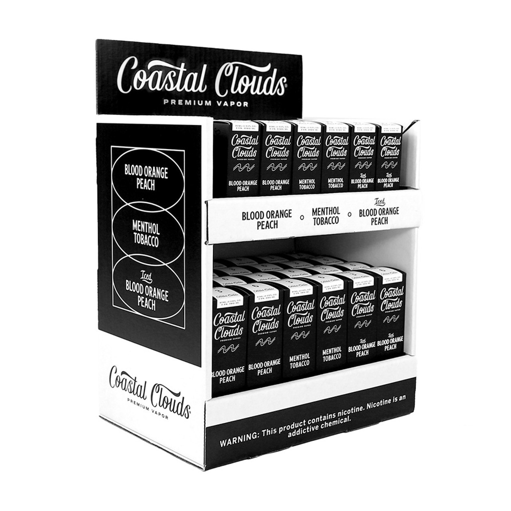 COASTAL CLOUDS COUNTERTOP DISPLAY 54CT/ BOX (BLOOD ORANGE PEACH, MENTHOL TOBACCO, ICED ORANGE PEACH.)
