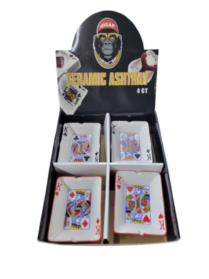 IDGAF KING OF CARDS DESIGN CERAMIC ASHTRAY 4CT/ BOX (ASH-99)