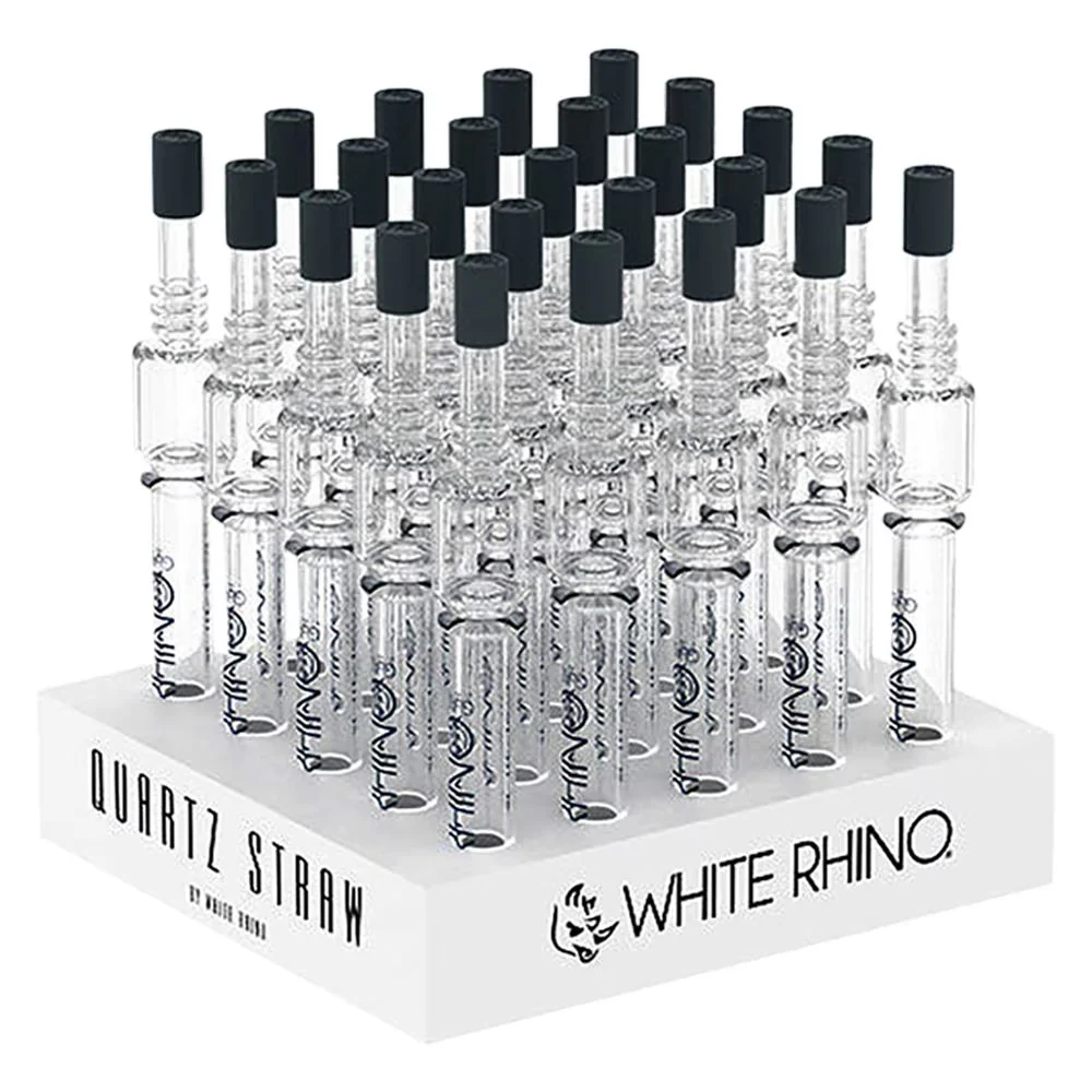 WHITE RHINO QUARTZ V4 DAB STRAW WITH SILICONE CAP - 25 COUNT DISPLAY